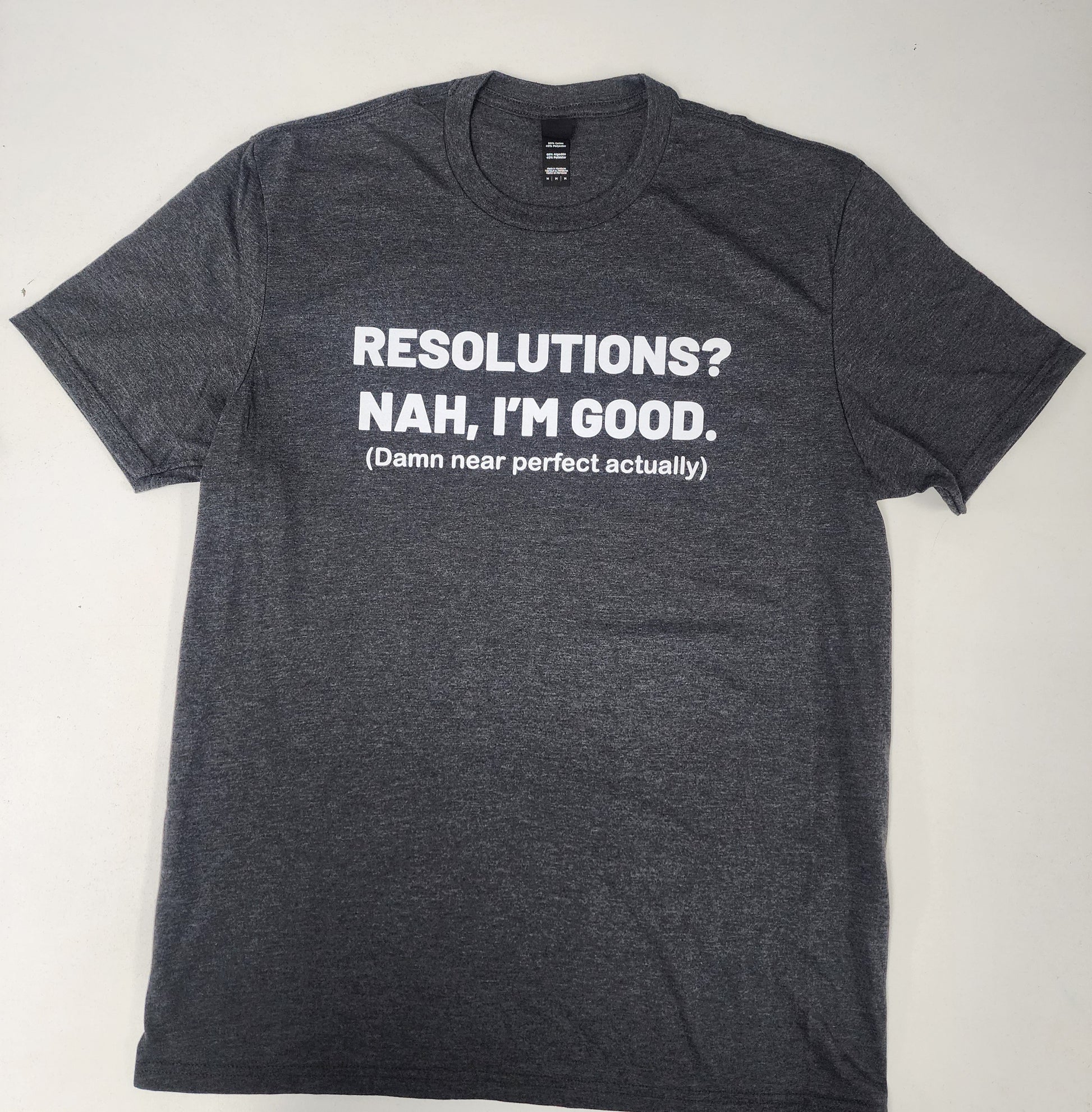 Printed in crisp white on a heather gray super-soft tee, this one works year-round because let’s be honest, resolutions don’t expire… they just quietly disappear.